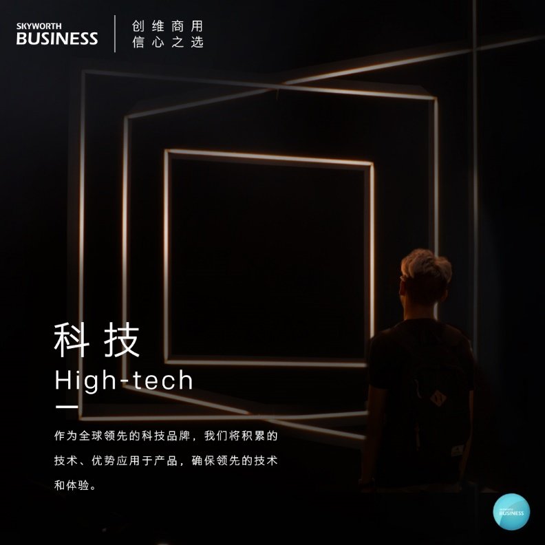得益于创维在显示行业30余年的技术积淀,创维商用在诞生之初就将“科技” 刻进了品牌DNA,“科技”与“可靠、精密、和谐”共同组成了创维商用的四大品牌承诺。在产品层面,创维商用更是将科技创新发挥的淋漓尽致。